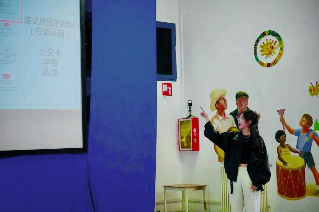 随后,博大学联秘书长曲佳睿为大家带来关于学习规划、课程选择和考试安排的精彩分享。她结合自身在博大的学习经验,向新同学们详细讲解了关于选课、考试和学生个人主页使用方法的注意事项。曲秘书长特别强调了每年“续居留”后与大学秘书处的对接工作,以及如何通过学校官网及时了解课程信息、成绩发布和各类通知。整场分享主题鲜明、视角全面,极大地帮助了新生更好规划学业进程,顺利开启在博大的学生生涯。